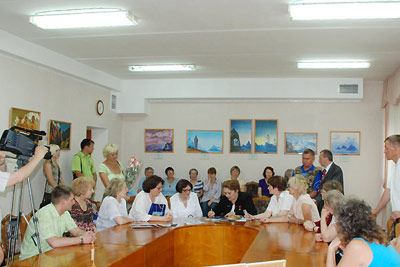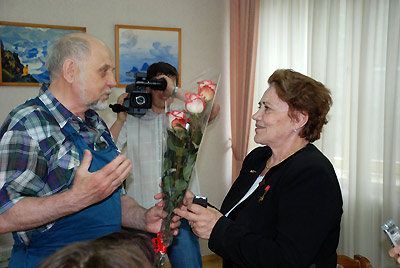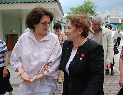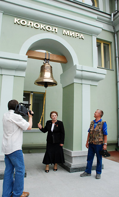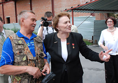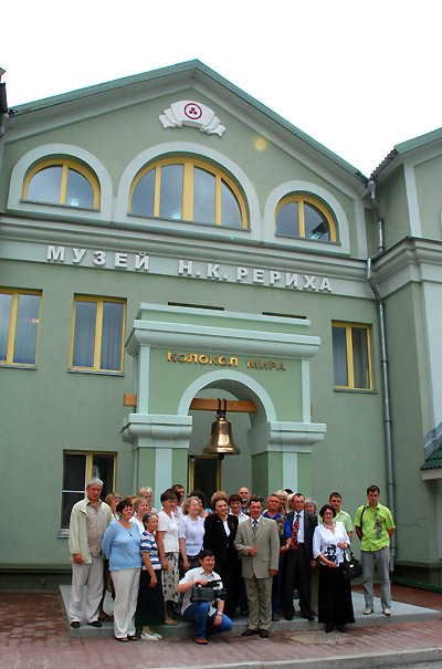 В понедельник 20 июля в Музее Н.К. Рериха в Новосибирске побывала московская делегация: инициатор традиции "Колокол Мира" в России - лётчик-космонавт СССР, Герой Советского Союза Анатолий Николаевич Березовой и вице-президент МЦР - летчик-испытатель, Герой Советского Союза Марина Лаврентьевна Попович. Колокол открыт совсем недавно, но растущее внимание к нему новосибирцев и гостей города показывает, как близко всем людям планеты это миротворческое начинание. Вот и Марина Лаврентьевна трижды ударила в колокол с пожеланиями мира во всём мире. Высокий и чистый звук колокола поплыл над городом. При удачном ударе звон продолжает держаться в воздухе несколько минут. После этого гости прошли в музей. М.Л.Попович впервые была в новосибирском Музее Рериха - и, по её словам, он произвёл на неё огромное впечатление. Особенно понравился гостье Каминный зал, и Марина Лаврентьевна тут же вспомнила о том, как покупалась для московского Музея Рериха картина "Сам Вышел". Именно в этот день Марина Попович отмечала свой день рождения, и на все поздравительные звонки с энтузиазмом отвечала: "Я в Новосибирске, в центре Рериха!", или: "Представь себе, я звоню в Колокол Мира!". Всех сотрудников впечатлил боевой и молодой дух этой удивительной женщины. На память о своём визите М.Л. Попович оставила подписанные фотографии со своих первых полётов и новый номер журнала "Культура и время", а с собой увезла несколько номеров журнала "Восход", альбом стихов Н.Д. Спириной по кратинам Н.К. и С.Н. Рерихов «Весть Красоты» и альбом «Завещано Сибири» о художественном наследии Рерихов в Новосибирске. Пусть Колокол Мира объединяет лучшие помыслы всех людей планеты. |