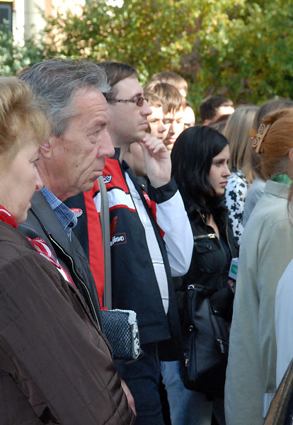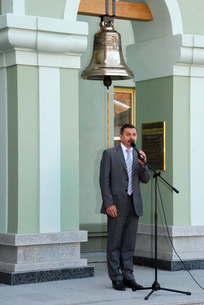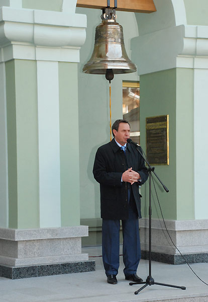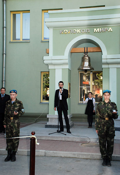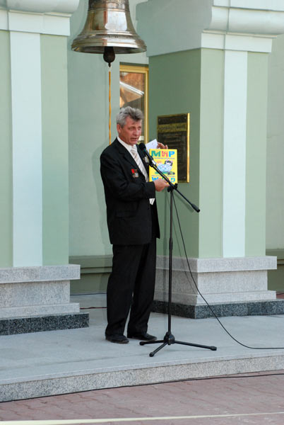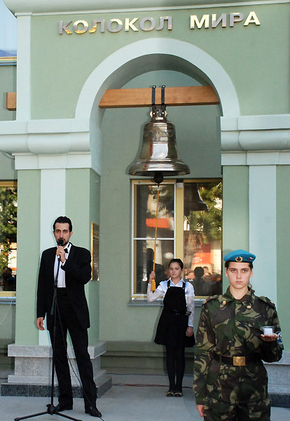 Ведущий назвал заставляющие задуматься цифры. "Из 5 тысяч лет истории человечества всего 292 года прошли на Земле без войн, - сказал он. - Более 4 миллиардов унесенных человеческих жизней, и 50 миллионов из них – на полях второй мировой… И двадцатый век принес немного мирных дней в историю человечества, но он добавил к трагедиям военным так же трагедии катастроф цивилизации, ведь двадцатый век создал самое страшное и неизведанное ядерное оружие, принесшее новые неисчислимые беды человечеству... Наш колокол призывает всех – задумайтесь и остановитесь! И мы будем услышаны, ведь сегодня в него ударит юная победительница ежегодного художественного конкурса «Мир без атомных катастроф» Таня Завьялова".