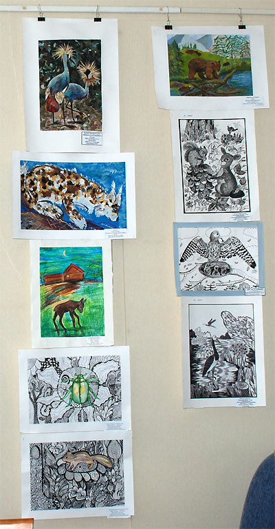Работа «Трубконосы около пещеры» 13-летней Тани Таровой из Изостудии «Палитра» г. Новосибирск получила спец-приз от Новосибирского городского комитета охраны окружающей среди и природных ресурсов. И в целом все работы этой студии были отмечены, как наиболее соответствующие тематике конкурса. Все они, как и работа Тани, и «Выхухоли за обедом» 8-летней Миланы Ревиной, и многие другие не просто нарисованы, но и сопровождаются небольшим кратким рассказом об изображенном животном.
