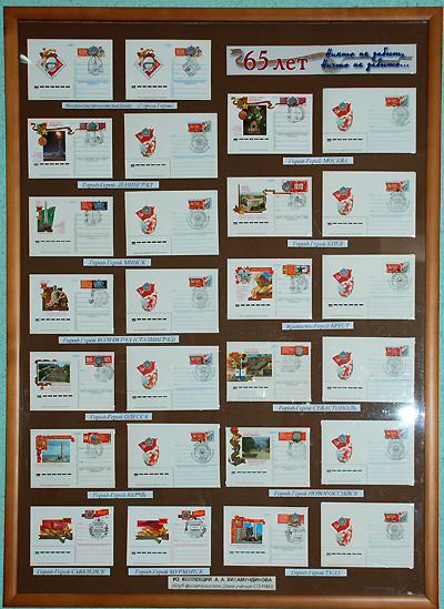- серия конвертов, посвящённая городам-героям. Звание «ГОРОД-ГЕРОЙ» присвоено 12 городам Советского Союза, трудящиеся которых проявили массовый героизм и мужество в защите Родины в Великой Отечественной войне 1941—1945 гг. Звание «крепость-герой» присвоено Бресту. Официально в качестве государственной награды звание установлено 8 мая 1965 года;