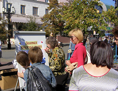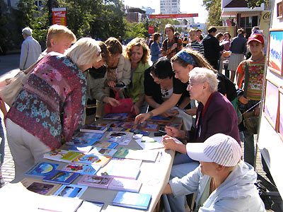 Киоск РОССАЗИИ сразу привлёк посетителей. Календарики были буквально сметены взрослыми и детворой. Люди удивлялись достойному ассортименту книг и недорогим ценам, кто-то приобретал полюбившиеся книги сразу по нескольку экземпляров.