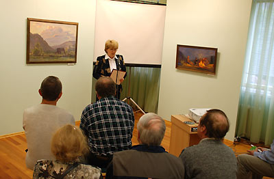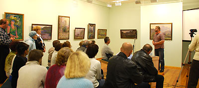 В Музее Н.К. Рериха открылась выставка масляных работ Арсения Милованова "Ойская песня". Сначала художник предполагал выставить 30 работ, созданных им во время десятидневного пленэра в Саянах на реке Оя, но потом сократил экспозицию до 19. "Находясь в Музее Н.К.Рериха, переосмысливаешь своё творчество, - пояснил Арсений Петрович на открытии выставки. - Заново задумываешься о его назначении, хочется отобрать самое лучшее".