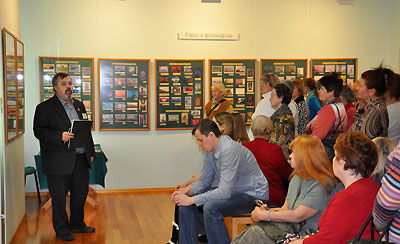 Затем прошла экскурсия по выставке «Рерих в филокартии»; также специально для этого дня был подготовлен стенд-выставка почтовых карточек 1914-1929 гг. из архива А.Г. Куницына.