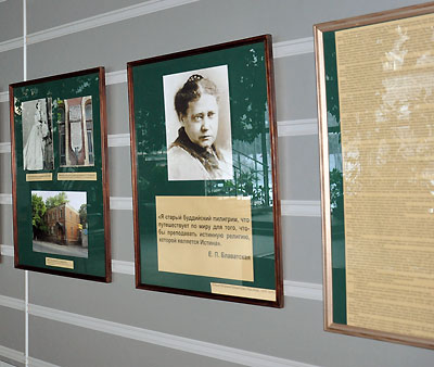 Почему выставка названа именно так? Елена Петровна писала своей сестре: «Я психологическая задача, ребус и энигма для будущих поколений — сфинкс». И действительно, пока мы ещё поверхностно знаем труды Е.П. Блаватской и только начинаем подходить к изучению оставленного ею наследия. На Западе издана очень обширная литература о Елене Петровне и её идеях. В России в последнее время тоже пытаются восполнить этот пробел. Основную часть выставки составляют фотографии Е.П. Блаватской, сделанные в разные годы, — их представлено около тридцати. Большую часть составляют портреты Елены Петровны, но есть и несколько групповых фото — Е.П. Блаватская вместе с Генри Олькоттом или среди участников Теософских конвенций, проходивших в Индии, и другие. Представлены фотографии родственников Блаватской: деда А.М. Фадеева, бабушки Е.П. Долгоруковой, матери Е.А. Ган, сестры В.П. Желиховской, а также фото тех людей, которые на разных этапах помогали Елене Петровне. Жизнь Блаватской была сопряжена как с большим поклонением, так и с большим предательством. Путь её не был усыпан розами, и поддержка друзей была очень важна для выполнения её миссии. Надеемся, что с развитием интереса к имени Е.П. Блаватской и её наследию люди с каждым годом будут открывать для себя что-то новое. Но самое главное — это объективно, без предвзятости, подходить к её трудам, стараться глубже вникнуть в те идеи, которые она принесла в мир. И тогда миссия этой великой женщины и её подвиг раскроются перед нами во всей полноте. | |
