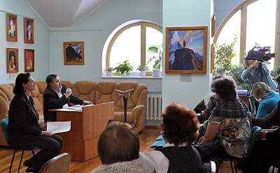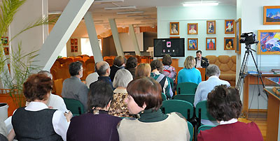 После небольшого вступительного слова ведущих (Юлия Цыганкова, Сергей Сапунков) и просмотра уже знакомого многим фильма студии СибРО «Великий закон человечности» участникам встречи удалось самим побывать в роли учеников-старшеклассников. Аудитория охотно отвечала на вопросы педагогов, рассуждала о том, легко ли совершать добрые поступки и изменять мир к лучшему.