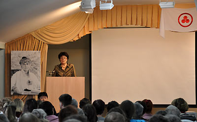 26 февраля в Музее Н.К. Рериха проходило Торжественное собрание, посвящённое Елене Ивановне Рерих. Начиная с 1989 года, каждый год мы отмечаем день рождения Елены Ивановны. "И надо сказать, что, сколько бы мы о ней ни говорили, исчерпать эту тему невозможно, так много аспектов и граней, которые мы ещё не можем постичь и которые мы постепенно осознаём по мере нашего собственного духовного роста. Но к какой бы грани её земной и надземной деятельности мы ни прикасались, это неизменно доставляет нам радость и подъём духа. (...) Если мы осознаём значение Учения в нашей жизни, понимаем, что было бы без него, то какой признательностью и любовью мы должны проникнуться к той, через которую оно было нам дано. И эти лучшие чувства объединят нас с нею".