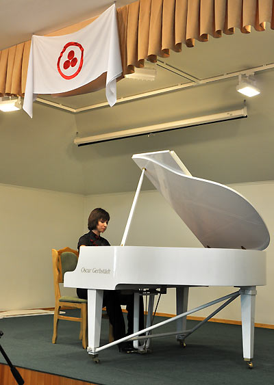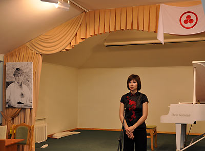 Традиционный рассказ о событиях месяца включал в себя информацию и о других мероприятиях, посвящённых Елене Ивановне. Напоминаем, что 11 февраля - накануне дня рождения Елены Ивановны Рерих - в Музее Н.К. Рериха состоялось открытие посвящённой ей новой выставки. (На сайте репортаж с события, как и другие, можно посмотреть в разделе новостей). В экспозиции в Каминном зале — личные вещи Елены Ивановны из фондов Барнаульского государственного музея истории литературы, искусства и культуры Алтая и Сибирского Рериховского Общества; её труды и фотографии её рисунков. Во второй части Торжественного собрания состоялся концерт фортепианной музыки. Лауреат международных конкурсов Мария Краснова исполнила "Картинки с выставки" Модеста Петровича Мусоргского. Музыка этого композитора была выбрана не случайно - он был двоюродным дядей Елены Ивановны.