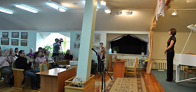 В аудиозаписи прозвучало вступительное слово Наталии Дмитриевны Спириной, которое впервые было зачитано 16 февраля 1992 года на торжественном собрании, посвящённом Е.И. Рерих. Далее в программе: * "Огненная Матерь пламенной Йоги" - так назывался доклад Н. Ф. Васильковой. * "Сотрудница Сил Света" - видеокомпозиция, составленная по словам Н.Д. Спириной. * "Сейчас подводится итог под роковой чертой эпохи" - заключительная часть сообщения О.А. Ольховой, составленная по письмам Е.И. Рерих в Харбин. Этот доклад опубликован в февральском номере журнала "Восход", и вы можете прочесть его на нашем сайте. Он посвящён вопросу о переустройстве мира, судьбе России и нашей ответственности за это. >>>