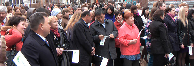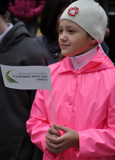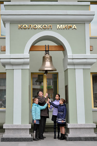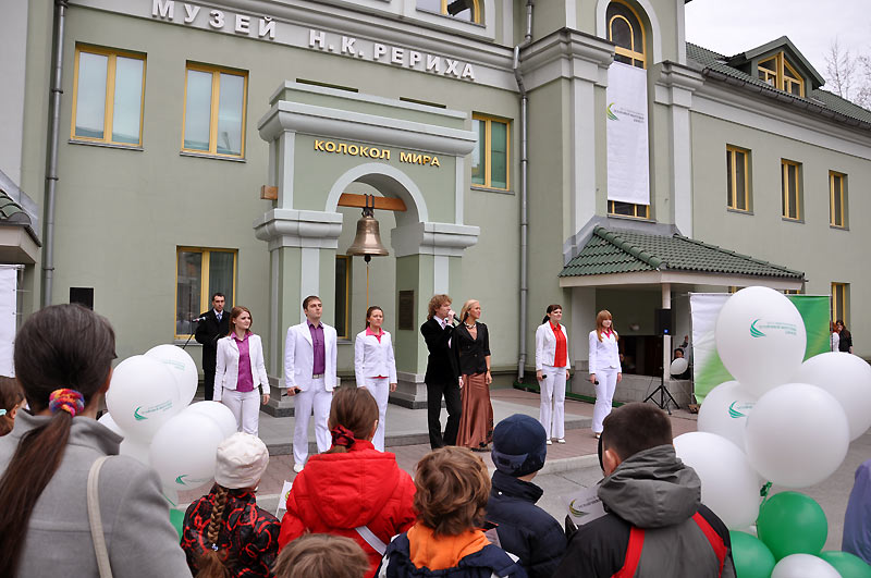 С приветственными словами выступили первый заместитель мэра Новосибирска А.Е. Ксензов, заместитель руководителя департамента природных ресурсов и охраны окружающей среды Новосибирской области А.А. Даниленко, заместитель начальника производственно-технического управления по общесистемным вопросам и природоохранной деятельности ОАО «Сибирская энергетическая компания» А.С. Осовский. Выступающие рассказывали о нелёгком труде по добыче электроэнергии, о необходимости охраны окружающей среды во время производственных процессов, о бережном расходовании энергоресурсов и необходимости открытия новых возобновляемых источников. Благодарственные письма были вручены представителям Сибирской энергетической компании, Ассоциации детских объединений, Центральной городской библиотеки им. К.Маркса. В Колокол Мира ударили победители седьмого открытого городского экологического конкурса детского творчества "Дикие животные родного края". "Голос новосибирского Колокола Мира, - отметил ведущий, - сливается с миллионами голосов, готовых принимать решения и ответственность за будущее человечества, за гармонию сосуществования всех живых существ планеты по имени Земля". Встречу завершило выступление творческого коллектива с песней о Земле, а затем участники праздника прошли в городской центр на открытие выставки лучших работ конкурса "Дикие животные родного края".