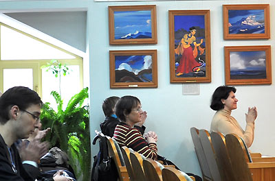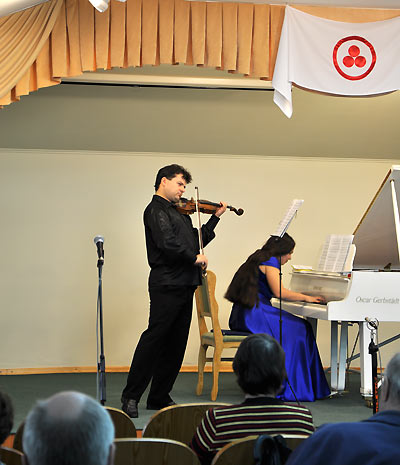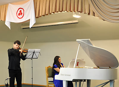 После церемонии у колокола гости праздника поднялись в концертный зал Музея Н.К. Рериха, где лауреаты международных конкурсов Исаак и Анна Нуразян встретили всех концертом классической музыки — звучали скрипка и рояль. По всем залам Музея для желающих велись экскурсии. Предлагаем вам познакомиться с фоторепортажем и выступлениями участников празднования Международного дня мира в Новосибирске.