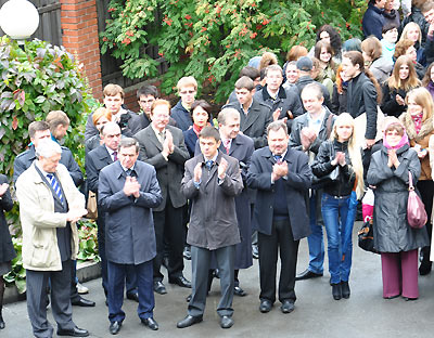 "Дорогие друзья, дорогие новосибирцы! Мы сегодня собрались на этом особом, уникальном месте нашего города в особый день — Международный день мира. Ещё одна особенность в том, что в послании генерального секретаря ООН провозглашено, что девизом этого года будет мир на земле ради развития будущего. Я думаю, что эти слова — мир на земле, развитие — по-особому символичны для нас, новосибирцев. Потому что мы первыми из российских городов разработали свою стратегию устойчивого развития Новосибирска до 2020 года", — так начал своё приветственное слово мэр Новосибирска В.Ф. Городецкий.