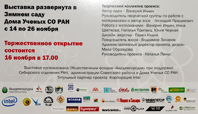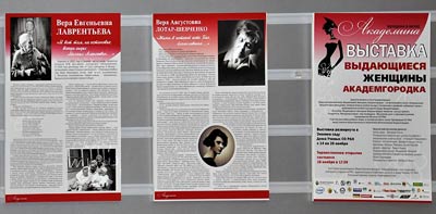 Выставка представляет собой фотографии и эссе, посвящённые двадцати двум женщинам, которые внесли особый вклад в становление и развитие сибирской науки и формирование особой культурной среды Академгородка. Выставка "Выдающиеся женщины Академгородка" является частью проекта "Академина. Женщина в науке", она посвящена "Михайлову дню" и проходит в рамках празднования 55-летия СО РАН. Участниц выставки выбрало жюри, в составе которого члены Президиума СО РАН, представители общественности и творческой интеллигенции Академгородка. Выставка будет развернута по 26 ноября.