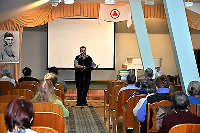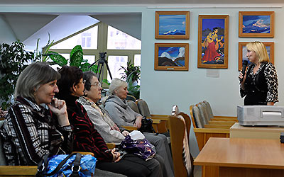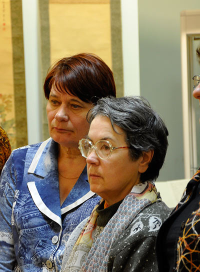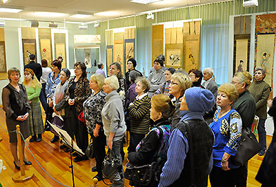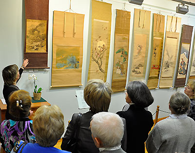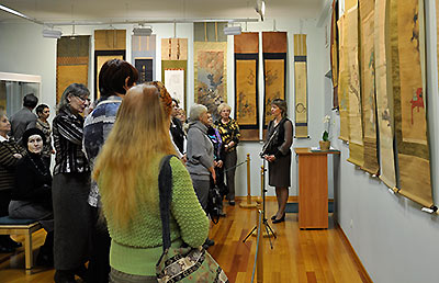 После перерыва состоялись познавательная встреча, объединённая темой Японии. В концертном зале прошла лекция преподавателя истории мировой культуры Русско-немецкого университета Л.И. Некрасовой, посвящённая культуре Японии. Затем все перешли на второй этаж Музея на экскурсию по выставке танок, нэцке и других художественных изделий - "Поэзия японской живописи". Выставка эта пользуется большим интересом новосибирцев и гостей города и продлена до 28 февраля 2013 г.