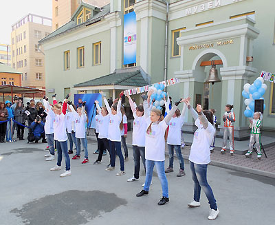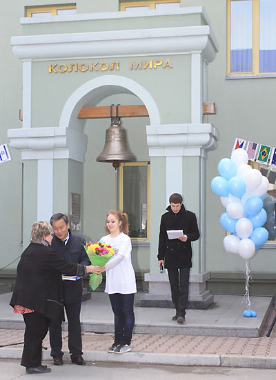 Мероприятие завершилось запуском в небо голубых воздушных шаров и, конечно же, звоном Колокола Мира. Возможность позвонить в него предоставили победительницам конкурса детского рисунка «Дикие животные родного края», который проводится под эгидой Дня Земли уже в восьмой раз.