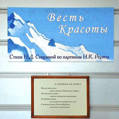 В красоте залог счастья человечества. Сегодня мы рады представить выставку «Весть Красоты» из фондов Музея Н.К. Рериха в Новосибирске. Репродукции картин Н.К. Рериха и стихи к ним Н.Д. Спириной. Символично, что эта выставка открывается в Доме учёных Академгородка. Именно здесь состоялась первая выставка картин Н.К. Рериха в 1973 году. И также потому, что Н.Д. Спирина жила в Академгородке, проводила экскурсии по выставкам Н.К. и С.Н. Рерихов, а также была активным членом Музыкального салона и английского клуба Дома учёных. Познакомимся поближе с жизнью и поэтическим творчеством Н.Д. Спириной. Наталия Дмитриевна Спирина (1911 — 2004) — крупнейший рериховед современности, общественный деятель, основатель Сибирского Рериховского Общества и двух Музеев Н.К.Рериха — в Новосибирске и на Алтае. Духовная ученица Б.Н.Абрамова, ближайшего ученика Н.К.Рериха, она приняла от своего наставника эстафету духовной преемственности и долгие годы трудилась в Сибири как просветитель и деятель культуры. Н.Д. Спирина — писатель и автор многочисленных выступлений на философские темы. Но многим людям она известна прежде всего как поэт, автор сборников стихов «Капли», «Перед Восходом» и других. Первая половина жизни Н.Д. Спириной прошла в Харбине. Она вспоминала: «Родилась я в городе Харбине (Китай, раньше — Манчжурия) в 1911 году. Харбин — культурный центр русского зарубежья — был очень интересным и своеобразным городом в том отношении, что он был совершенно русский, — это был осколок старой России». Полюбив поэзию с ранних лет, «как только стала понимать слово», Наталия Дмитриевна пронесла эту любовь через всю жизнь. «Поэзия украла меня и никому не отдала», — говорила она. Посещая с гимназических лет литературно-поэтический кружок в Харбине, Наталия Дмитриевна, по её словам, «копила, впитывала поэзию», но сама стихов не писала. Удивительно сильным было тяготение Н.Д. Спириной к слову, и особенно слову поэтическому. Многое она легко запоминала наизусть. Впоследствии полюбившиеся стихи переписывались в отдельные тетради. Среди любимых поэтов кроме Лермонтова и Пушкина были Крылов и Тютчев, поэты серебряного века: Гумилёв, Ахматова, Цветаева, Пастернак. Переломным моментом в жизни Наталии Дмитриевны стало знакомство с Н.К. Рерихом и его творчеством. Н.Д. Спирина вспоминает об этом: «В 1934 году в Харбин приехал Н.К. Рерих со своей второй, Баргинской экспедицией, и здесь он прожил некоторое время. К сожалению, тогда ... к нему лично я не подошла, но помню их выступления в больших залах нашего города, где они [Н.К. Рерих и Ю.Н. Рерих] рассказывали о своей экспедиции и встречались с людьми. А моя встреча с ним произошла через монографию "Рерих", изданную в Риге в 1939 году, когда я познакомилась с ним как с художником. Книга "Пути благословения" была первой книгой Рериха, которую я прочла. Она произвела на меня огромное впечатление и приобщила к Рериху не только как к художнику, но и как к мыслителю, писателю, поэту, общественному деятелю». Вдохновившись идеями Рерихов, Н.Д. Спирина начинает писать стихи. Она вспоминает. «До того как я начала читать книги Учения Живой Этики, я никогда стихов не писала и поэтом не была. На писание стихов ничто меня не вдохновляло: ни личные чувства, которые у каждой молодой девушки бывают, — это же естественно, — ничто [другое]. Я была преподавательницей 