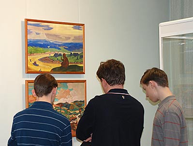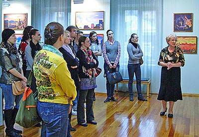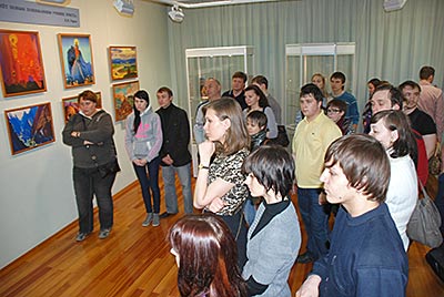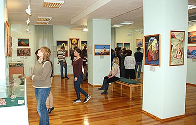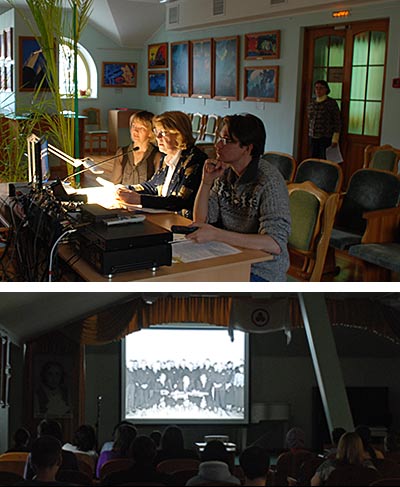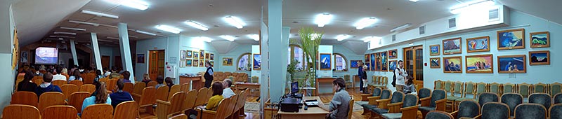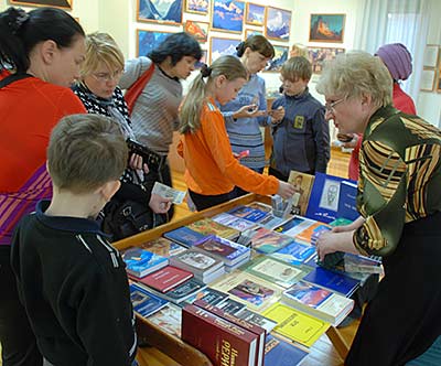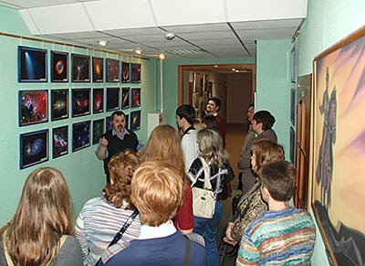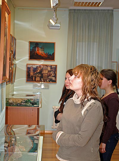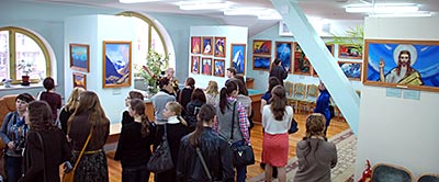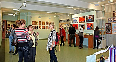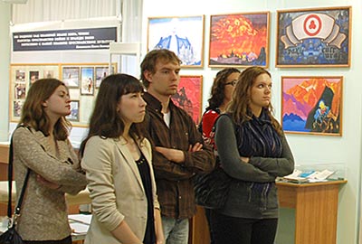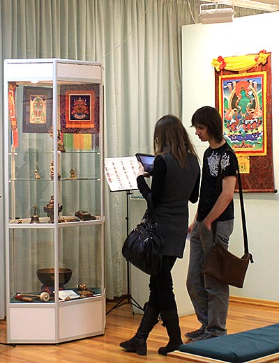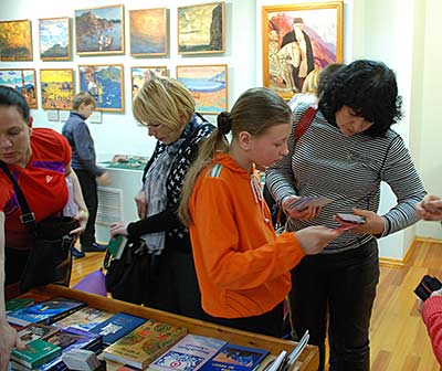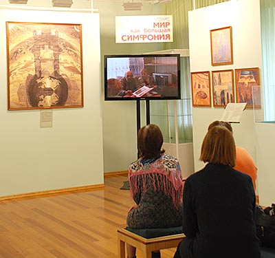 В то время, как одни посетители смотрели фильм, другие знакомились с выставкой.