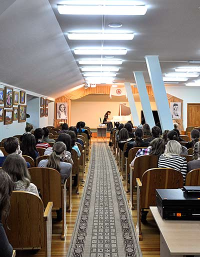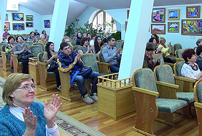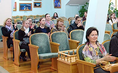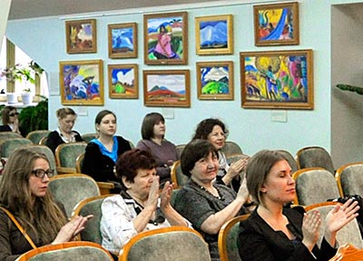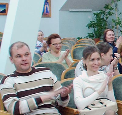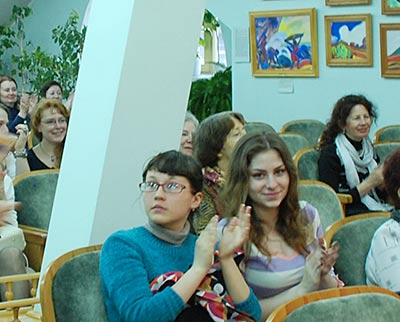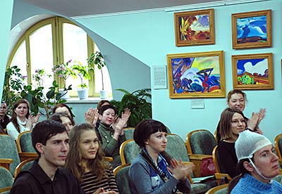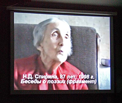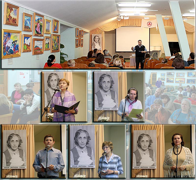 В 18 часов началась поэтическая гостиная о творчестве Наталии Дмитриевны Спириной. Сотрудники СибРО читали её стихи, был показан фильм "Человек и Поэт с большой буквы", а также фрагменты видеозаписей, где стихи её читают наизусть и объясняют дети, большие и маленькие, самой младшей из них - три года. Поэтической гостиной заинтересовалась относительно небольшая часть посетителей, пришедших в этот день в Музей, зато чувствовалось, что вместе собрались люди, по-настоящему любящие поэзию. Сразу же после окончания гостиной книжные столики были окружены желающими приобрести для себя и своих близких сборники стихов Наталии Дмитриевны.