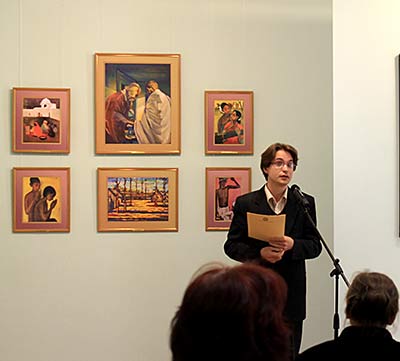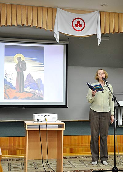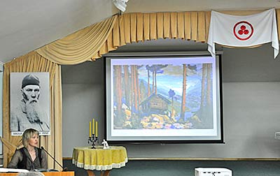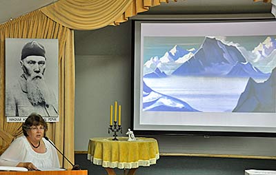 Праздник этого года отмечен открытием выставки "Мотивы Индии". В феврале 2013 года Музей Н.К. Рериха в Новосибирске посещал Чрезвычайный и Полномочный посол Индии в Российской Федерации Аджай Малхотра, с ним был также заместитель директора Культурного центра имени Джавахарлала Неру посольства Индии в РФ Санджай Веди. В ходе этой встречи музею и была предложена выставка работ современных индийских художников. Открыл выставку Димитрий Кшеновский, рассказав об истории индийской живописи и творчестве художников, чьи работы представлены на выставке. В культурах Индии и России есть много общего, и при этом ключом к пониманию живописи каждой из стран становится знание культурных традиций. К открытию был подготовлены буклет, видеоэкскурсия, был показан отдельный фильм и о творчестве Святослава Николаевича Рериха. Другим большим событием дня стала поэтическая гостиная "Весть красоты", посвящённая стихам Н.Д. Спириной по картинам Н.К. Рериха. В течение всего дня люди знакомились с выставками в залах Музея, смотрели видеофильмы, каждый час можно было позвонить в Колокол Мира и послать добрые мысли всему миру. |