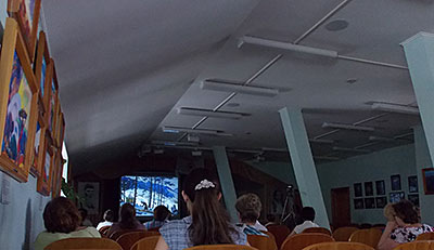 После экскурсии по залам Музея гости могли вернуться в концертный зал для просмотра документального фильма "Николай Рерих" киностудии "Киевнаучфильм" (1976 г.). Ранее, в советские времена, фильм был знаком большинству зрителей лишь с купюрами, сейчас демонстрировался его полный вариант без сокращений.