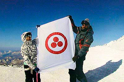 Традиция разворачивать на высочайших горных вершинах нашей планеты Знамя Мира родилась в среде альпинистов более сорока лет назад. В 30-е годы прошлого века выдающимся культурным деятелем XX века Н.К. Рерихом этот флаг был предложен, как охранное Знамя Культуры. Впервые белоснежный стяг со знаком триединства в 1974 году был поднят на алтайскую гору Белуху группой горных туристов из новосибирского Академгородка, возглавляемую Е.Г. Великановым. Высокий смысл содержит этот священный знак, встречающийся в культурах разных народов. По словам Н.К. Рериха, знак этот — «символ Вечности и Единения».