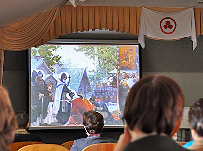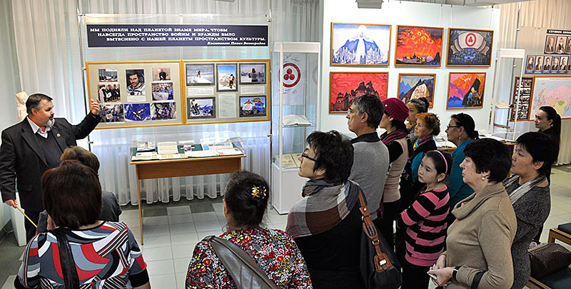 После открытия выставки посетители могли ознакомиться с фильмами «Имя святое – Сергий» и «Великий закон человечности».