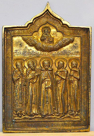 Производство литых икон началось в XVII веке и пришло в Россию с Запада. К XIX веку в России открылось много мастерских медного литья, ставших впоследствии именитыми. Спрос на литые иконы объяснялся невысокой ценой и практичностью. Основным сплавом для изготовления меднолитых икон была бронза. Со временем для их изготовления всё чаще стали применять латунь. Старинные литые иконы обладают необыкновенной выразительностью и зачастую использовались как «обереги». Они украшались орнаментами в виде виноградной лозы, цветов и птиц. Растительный орнамент — это символ божественного: цветы — остатки рая на земле, виноградная лоза — олицетворение всего, что полезно и красиво, символ самого Иисуса Христа. Литые иконы и кресты из латуни своим золотистым блеском указывали на Божественное присутствие. Ведь в иконописи именно золотой (жеётый) цвет означает Божественный свет и сияние вечной жизни. Кроме того, выбор медных сплавов объясняется не только их внешней привлекательностью и практичностью, но и антикоррозийными свойствами. Со временем в литых иконах и крестах для расцвечивания фона стали применять эмаль, которая была выражением стиля, допустимого православными традициями. В эмали каждый цвет несёт индивидуальный смысл. Красный — цвет Небесного очищающего огня, жертвы и жизни; голубой — знак духовной чистоты и целомудрия; белый символизирует Рай, невинность души, чистоту и святость; зелёный — Животворящее Древо; синий — цвет Божественной мудрости, вечности, истины; бирюзовый — цвет молодости и сиреневый — печали. Чёрный означает отречение от мира, чёрный в сочетании с белым — смирение.