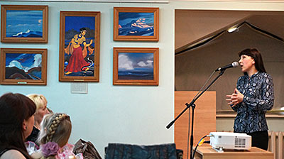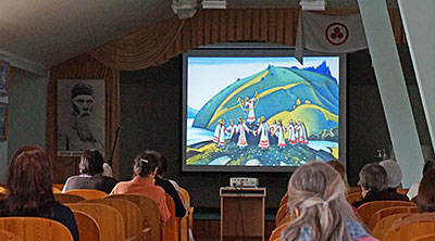 8 марта в Музее Н.К. Рериха прошли праздничные мероприятия. Показанная в этот день слайд-композиция «Пламенное сердце» (часть I, «Труды Мадонны») была посвящена образу Богоматери в творчестве Н.К. Рериха.