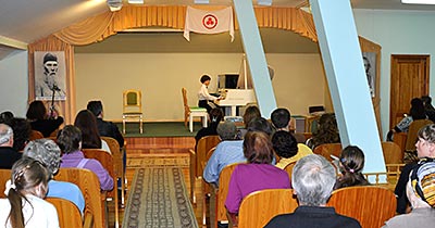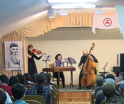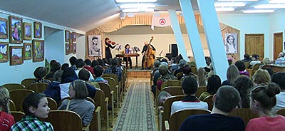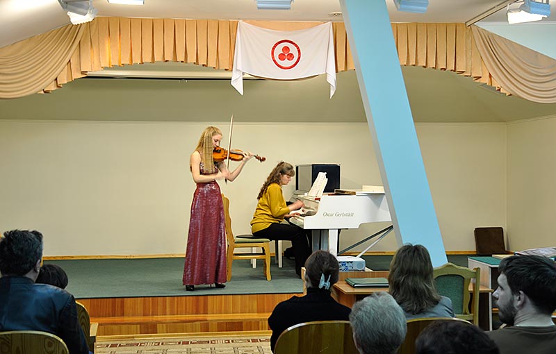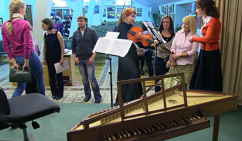 (продолжение репортажа, начало здесь: Часть 1. Мастер-класс) Начиная с 15 часов на третьем этаже Музея, в концертном зале, проходили концерты. Первыми выступили учащиеся специальных музыкальных школ Новосибирска, затем прошёл концерт музыки для альта. Самое необычное выступление началось ближе к вечеру - на сцену вышли музыканты с мало кому знакомыми инструментами, ансамбль Insula Magica. Звучала музыка на спинете (небольшом клавесине), на старинной гитаре, на виоль д'амуре (струнном смычковом инструменте эпохи барокко и раннего классицизма, по внешнему виду напоминающем современный альт), и на самом большом и редчайшем струнном инструменте - венском виолоне. По окончании концерта музыкантов окружили зрители, и начались рассказы об особенностях игры на этих редких инструментах. (окончание: Часть 3. Экскурсии)