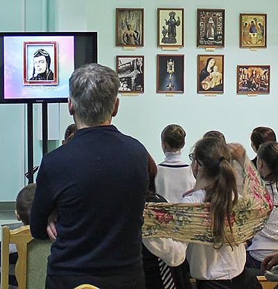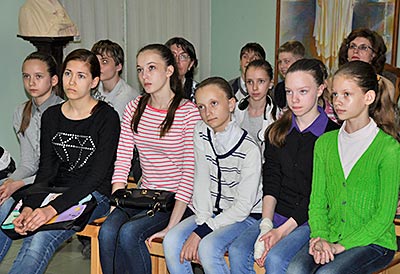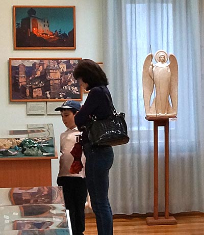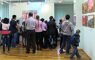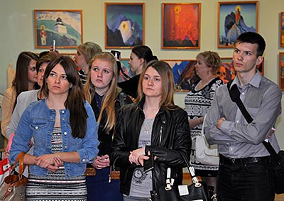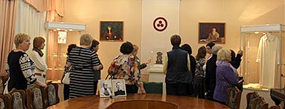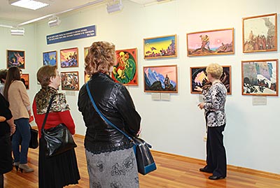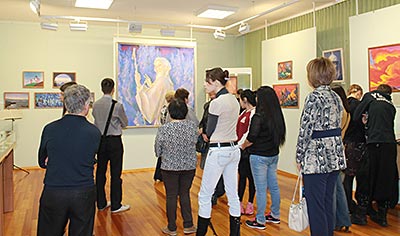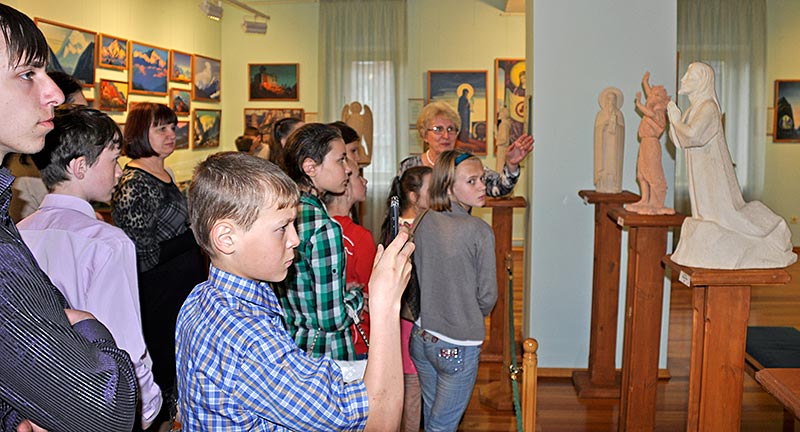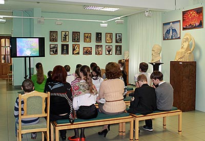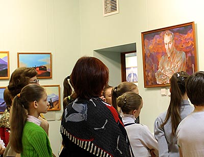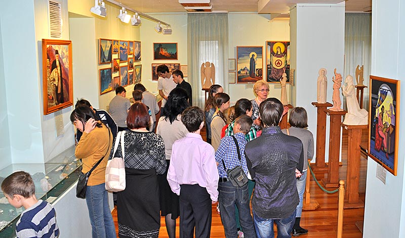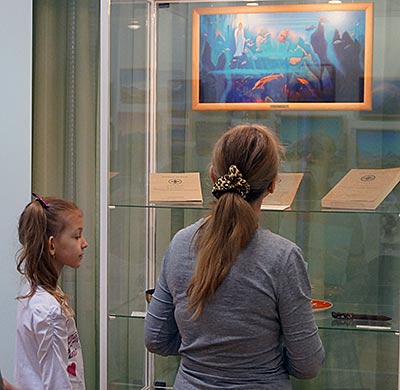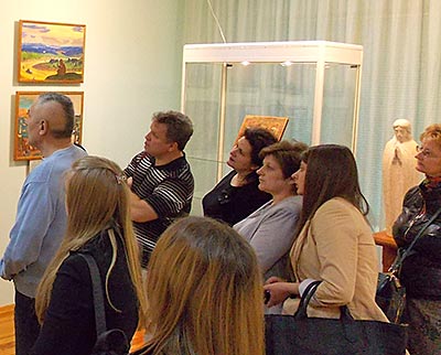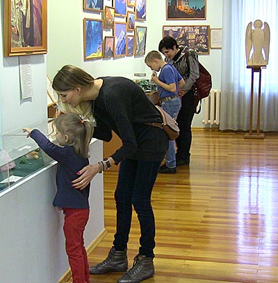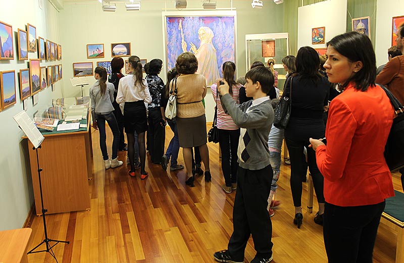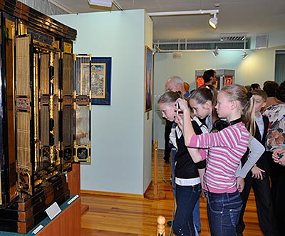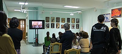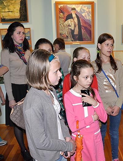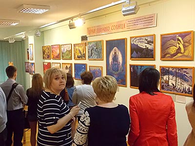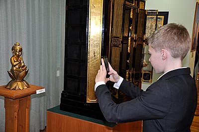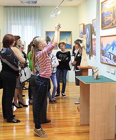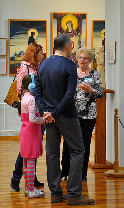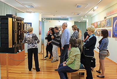 (окончание репортажа, начало здесь: Часть 1. Мастер-класс. * Часть 2. Концерты) В течение всего дня в выставочных залах Музея Рериха проходили экскурсии, для желающих демонстрировались различные фильмы студии СибРО. Постоянных посетителей также ждали недавно открывшиеся новые экспозиции: выставка графики Н.К. Рериха из частного собрания и выставка картины Леопольда Цесюлевича «Зов Преподобного», посвящённой Сергию Радонежскому. Среди гостей Музея было много школьников и маленьких ребятишек. Люди с интересом задавали вопросы, листали дополнительные материалы, кто-то подолгу размышлял у наиболее понравившихся экспонатов. С утра Музей посещали большей частью семейные группы, а ближе к вечеру потянулась вдумчивая и серьёзная молодёжь. Завершилась программа только в 22 часа. |