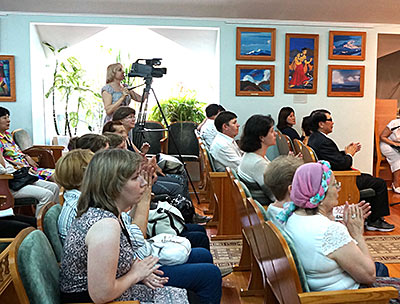 29 июня в Музее Н.К. Рериха прошёл День открытых дверей, ежегодно проводимый в День города Новосибирска. По традиции праздник открылся словом Н.Д. Спириной: «Какая счастливая судьба у города Новосибирска, в прошлом Новониколаевска, что он имеет, в отличие от других городов, два ясносияющих места — Часовню во имя великого Святителя я Чудотворца Николая и Музей во имя всемирно известного художника Николая Рериха». Впервые эти слова прозвучали 28 июня 2003 года в выступлении Наталии Дмитриевны, специально подготовленном ко Дню открытых дверей, и стали лейтмотивом проведения всех последующих праздников в Музее Н.К. Рериха, проводимых в День города Новосибирска. В этот день была открыта необычная и интересная выставка: акварели художника из Тайваня профессора Куо Мин-фу «Терра Инкогнита — прекрасный остров. Красота и очарование Тайваня». Также в течение дня состоялось два концерта, шли экскурсии по всем залам Музея. Звучал Колокол Мира, ударить в который могли горожане и гости города. Многие подходили к колоколу и, ударяя в него, произносили: «За мир на Украине».Торжественное открытие первой выставки художника Куо Мин-фу началось с выступления её организатора и куратора - искусствоведа Владимира Никишина, благодаря инициативе и усилиям которого творчество художника Куо Мин-фу впервые увидят зрители России. В. Никишин рассказал о творческом пути художника, его беззаветной любви к красоте природы родного острова Тайвань, являющейся нескончаемым источником вдохновения мастера. |
