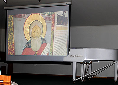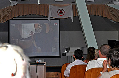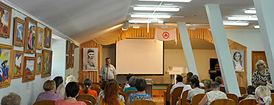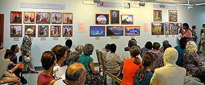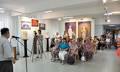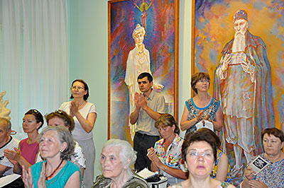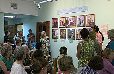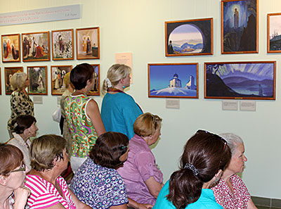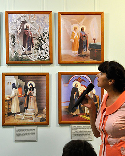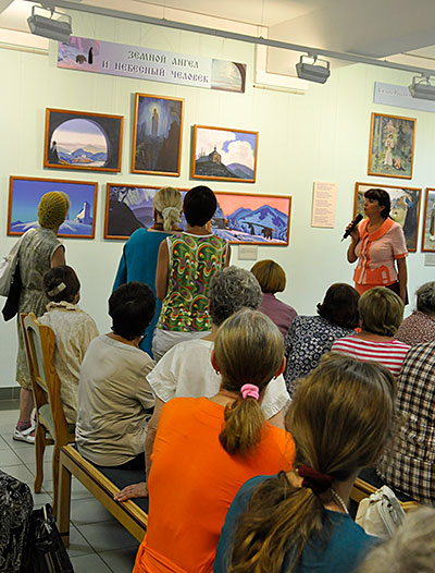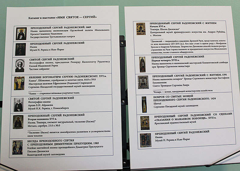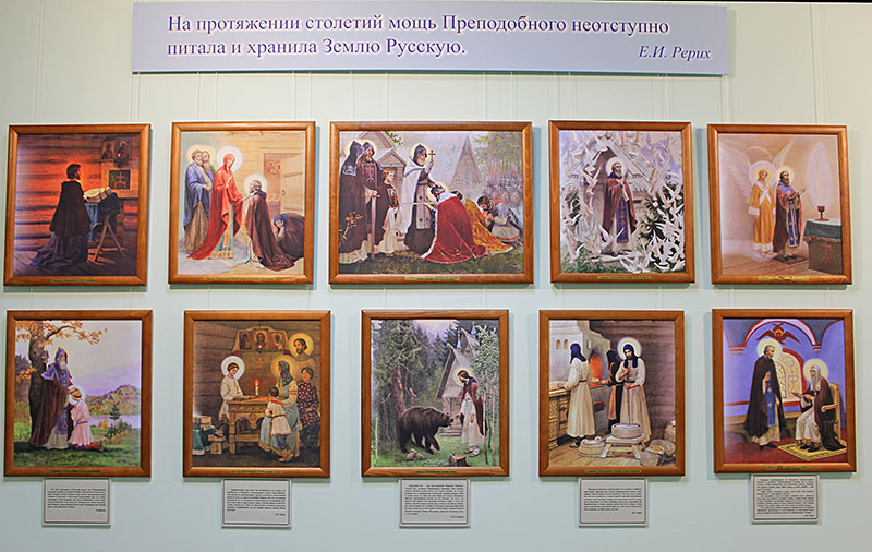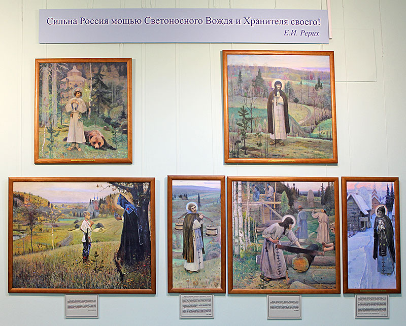 12 июля в Музее Н.К. Рериха были открыты две выставки, посвящённые Преподобному Сергию: выставка икон «Имя святое – Сергий» и выставка репродукций картин художников Н.К. Рериха, М.В.Нестерова, С.Н. Ефошкина «Земной Ангел и Небесный Человек». После открытия выставки был показан фильм «Обитель Сергия. На последнем рубеже». С именем Преподобного Сергия Радонежского связаны поворотные события отечественной истории, знаменовавшие духовный подъем русского народа. Высотой своего духа Преподобный Сергий сумел воплотить в жизни все нравственные законы христианства. Он не произносил длинных проповедей, но учил, прежде всего, своим примером. Труд был возведён им в священное понятие, неотделимое от духовного самоусовершенствия. «Благодаря широкому установлению им и учениками его новых обителей, школ суровой подвижнической жизни, сильно поднялась нравственность народа». Возникавшие вокруг таких монастырей поселения имели перед собой пример высокого самоотречения и бескорыстного служения ближнему. Духовное наследие Преподобного оказало огромное влияние на всю древнерусскую культуру, и прежде всего - на иконопись. В Сергии Радонежском Андрей Рублёв и его современники воочию увидели столь убедительный пример святости, без которого никакая фантазия не смогла бы создать такие выдающиеся произведения христианского искусства. Впервые появляются чисто русские иконы, где просветлённые лики святых полны возвышенной духовности, мягкости, сердечности. ''Бог и Родина'' — вот то, что двигало жизнью и судьбою Преподобного Сергия... и эта любовь дала ему возможность так совершенно, до конца, исполнить заповедь Господню о любви к людям». Самый мирный Подвижник, он без колебания благословляет князя Дмитрия на бой с татарами. Именно этот сюжет позволял художникам развить мысль о том, что только в духовном и национальном единстве заключена необоримая сила России, что русский народ непобедим тогда, когда сплотит все духовные и физические силы.