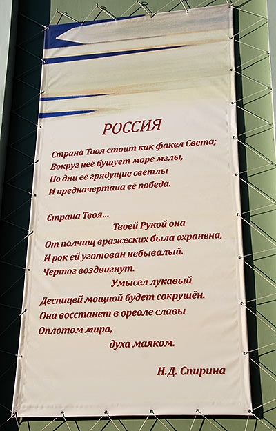 Ещё одна лампада зажжена в центре России Азиатской — Часовня во Имя Преподобного Сергия Радонежского. В этом году мы отмечаем 700-летие со дня рождения Святого Сергия и собрались здесь по зову Великого Сердца. Тысячи километров и сотни преград не стали тому препятствием. Семь столетий Знак Преподобного сияет над Русью, и сила его не меркнет в веках. Потому что сила Святого Сергия — в живых сердцах людей, потому что Он основоположник и строитель Русской духовной культуры. Именно Его Русская православная церковь величает: «От Бога данный России Воевода». И не Сама ли Богоматерь благословила Его на подвиг. Великий русский художник и гуманист Николай Константинович Рерих писал: «Дано Преподобному Сергию трижды спасти Землю Русскую. Первое — при князе Дмитрии, второе — при Минине, третье — теперь». Два великих спасения состоялись. И третье свершается сегодня, в наши дни — именно сейчас, в такое нелёгкое время для России, когда Земля содрогается от братоубийственных войн, когда Россия одна стоит как «Факел Света», когда к её границам подступила тьма, когда миллионы людей разных государств земли с надеждой смотрят на неё! Без помощи Преподобного нам не выстоять и не пройти. Почему мы так доверяемся Святому Сергию? Потому что «Преподобный не терялся в искании, но устремлённо восходил и строил. Можно сказать, что далеко за пределами богоискателя он был Богоносцем», — писал Н.К. Рерих. В радостный день открытия Часовни мы вновь соборно обращаемся к Преподобному Сергию Радонежскому за помощью. «Ибо истинно Он наш Единый Заступник». Он Хранитель Земли Русской, именно Ему надлежит вывести Россию на путь духовного воскресения сегодня и тем спасти нашу многострадальную Землю и человечество. Мощь Преподобного велика, но для её выявления на земле она должна быть осознана и загореться в сердцах людей неугасимым энтузиазмом. Именно энтузиазм, помноженный на веру в Святого Сергия, даст нарастающую мощь утверждения наступления Нового Мира. С чего начинается Новый Мир, так горячо желаемый нами? С Града чудесного — с его жителей, воплощающих в жизнь Учение. Во времена строительства музея Н.К. Рериха Наталия Дмитриевна Спирина говорила: «Строительство музея является началом воплощения Учения в жизнь». Музеи построены и работают в Новосибирске и на Алтае. Они несут весть о Новом Мире через картины Н.К. Рериха, через Учение Живой Этики. Перед нами чудесной красоты Часовня — ещё одно строение Нового Мира. Она воздвигнута по замыслу Наталии Дмитриевны Спириной, нашими молитвенными трудами, нашими руками. Твёрдо совершается строительство Духа, и пути будущего обозначаются многими знаками. Вехами строительства отмечаются этапы воплощения Учения Живой этики в жизнь. Так продолжается созидание завещанной общины, без которой Земля дальше существовать не может. Сегодня каждый участник строительства может сказать, что его лепта просияла ещё одной ступенью на бесконечной лестнице восхождения. «Победа! Победа! И сколько побед впереди!» Воздадим должное уважение строителям Часовни: архитектору, художнику, рабочим и всем, кто вложил свои силы и средства в её создание. Ваши имена занесены в Почётную книгу и навсегда останутся в памяти будущих поколений строителей. Не успокоимся на этом. Ведь Град завещанный ещё только первыми искрами начинает проявлятьс