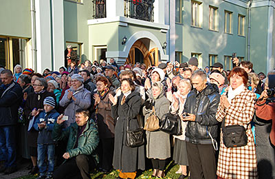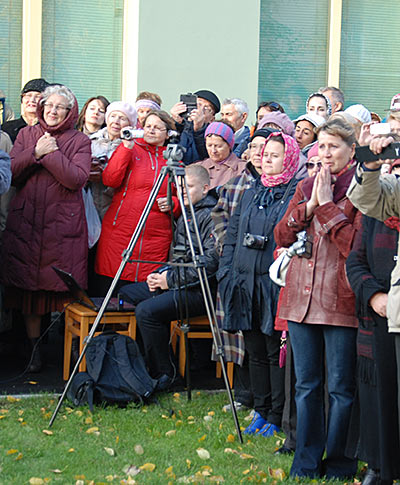 Ирена Залецкене, Почётный председатель Рериховского общества Литвы:Дорогие, любимые друзья! С великим праздником, с праздником Светоча Мира, который родился в России для всей Земли, для всей планеты! С радостью, с любовью Он учит нас, как любить друг друга, как нести Свет, как строить мир на нашей Земле. Примите нашу любовь и преданность нашего общества Литвы. Примите эту ленту в честь 700-летия нашего Преподобного Сергия Радонежского, нашего любимого Учителя, нашего Покровителя. Спасибо, друзья дорогие, что вы нас пригласили, что дали возможность приехать и присоединиться к вам. Спасибо вам, дорогие друзья, за вашу прекрасную, сердечную работу. Вы построили такую изумительную Часовню. Это подарок всей планете, всему миру, а не только русской земле. Это Светоч Мира действительно воплотился на русской земле и несёт свет всему миру. Спасибо.