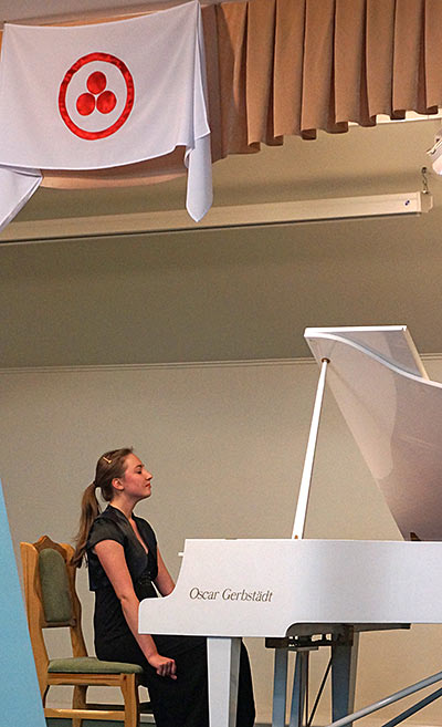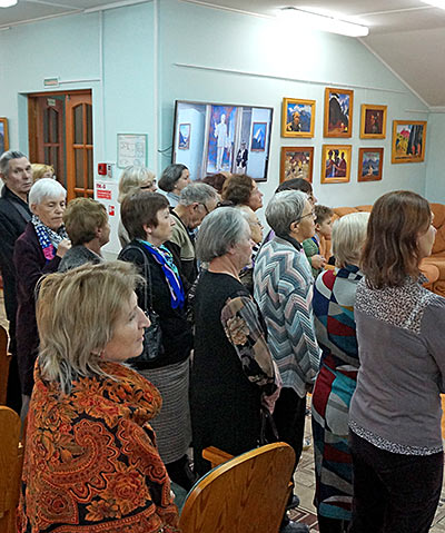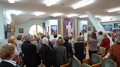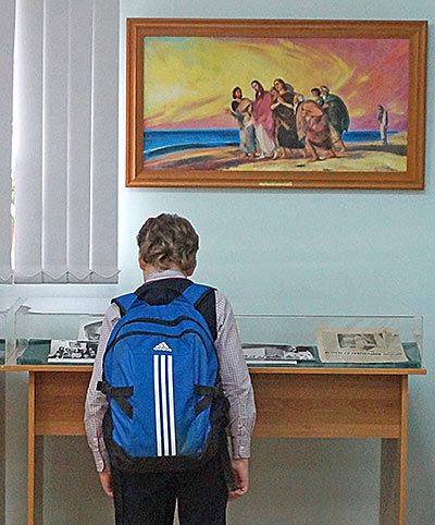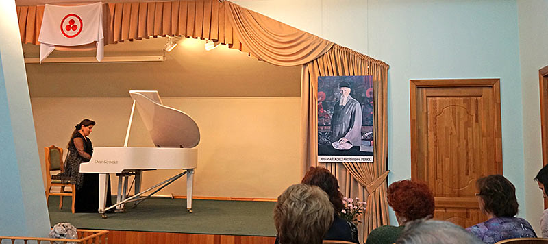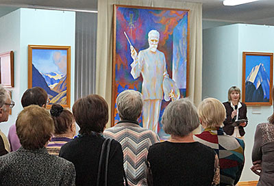 Следом начался концерт, а на втором этаже Музея, в выставочных залах жизнь шла своим чередом. Там проходили экскурсии. Пришли всем классом школьники, с интересом разглядывали картины Рериха, скульптуры Леонова, слушали рассказ экскурсовода. Только проводили детей - встречали новых посетителей. Познакомиться с Музеем Н.К. Рериха, с творчеством знаменитого художника пришли военные люди, офицеры — 50 человек. Многие из них прошли в своё время через «горячие точки», воевали. Когда экскурсовод стал говорить об идеях Н.К. Рериха, о Знамени мира, о наступлении Новой Эпохи, в которой не будет ненавистных людям войн — слушали серьёзно, без шуток и недоверчивых улыбок.
