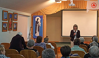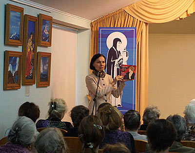 И.И. Сереброва представила поступивший из типографии к 110-летию Святослава Николаевича альбом его живописи - "Женские образы в творчестве Святослава Рериха" с предисловием Владимира Никишина. К Рериховским Чтениям мы получали вариант издания в мягком переплёте, а теперь в книжном салоне появилось долгожданное издание в твёрдом переплёте.