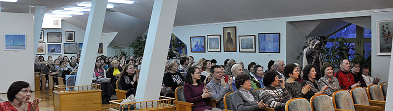 Настольной книгой Баха была Библия. Всё, что он творил, — творил во имя Бога. Это прежде всего излюбленные евангельские сюжеты. Говорят, что он написал пять «Страстей» — на сюжеты пяти Евангелий. Из них нам известно только два произведения. Может быть, не всю его музыку ещё удалось найти. Именно Бах открыл миру боль евангельских событий. Действительно, боль есть, и она страшна, и смерть страшна, но через смерть лежит дорога к воскресению… Приглашаю на сцену Ольгу Колобову — нашего давнего друга.