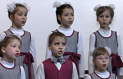 Сейчас хор детской школы искусств № 25 исполнит две рождественские песни, поздравит нас с Рождеством. Хормейстер — Татьяна Александровна Решетникова, концертмейстер — Инна Рафаиловна Кофлер.