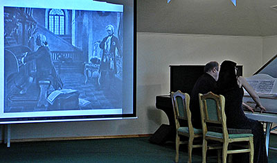 17 января этого года в Музее Н.К. Рериха состоялась очередная встреча любителей музыки в рамках Музыкального лектория. Она была посвящена И.С. Баху, гению музыки, 330-летие которого мы отмечаем в этом году. Встречу вела Эльвира Полонская. По её словам, это было своеобразное музыкальное приношение, в котором музыкальные номера предварялись небольшими комментариями и видеосюжетами. Музыка Баха была представлена достаточно полно: прозвучали его произведения для клавира, струнного оркестра, органа, хора, вокала. Вечер, длившийся около двух часов, прошёл на высоком духовном подъёме.
