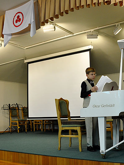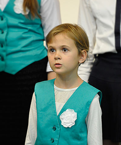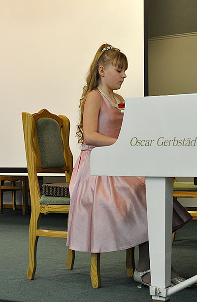 У И.С. Баха было много детей — 20, 6 сыновей стали известными музыкантами, композиторами. Бах был замечательным семьянином. Он всех своих детей обучал музыке и сочинял для них небольшие пьесы. Приглашаю на сцену Марию Титенко, ученицу 3 класса детской школы искусств № 18, и она исполнит двухголосую инвенцию ля минор.