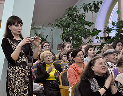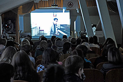 Вот уже час пролетел незаметно. Скажите, пожалуйста, вы сегодня уже чему-то удивлялись или пока ещё нет? Внимание на экран…. Видеоинтервью на улице и в музыкальной школе было посвящено Баху – дети и молодые люди, как с музыкальным образованием, так и обычные прохожие, отвечали на вопрос, знают ли они Баха и что могут сказать о его музыке. — Она очень глубокая… — Вдохновляющая… — Бах — это гений во всех сферах музыки, на всех инструментах умел играть, во всех жанрах его времени, и поэтому для всех моих товарищей и музыкантов это что-то такое сложное в понимании и в исполнении. Задумываешься, как такой человек мог всё охватить… — Для меня это такой человек, который подарил нам такое количество произведений… это широко известное имя, кажется, что даже такие люди, которые далеки от музыкального мира, знают эту фамилию. Для меня музыка Баха, в первую очередь, связана с храмами, церквами, и первая ассоциация — это орган. Ответить на вопрос, какая эта музыка, я затрудняюсь… для меня она сложная, потому что в основном полифоническая музыка, многогранная. — Все по-разному воспринимают музыку Баха. Для меня она очень глубинная, возвышенная. — Завораживающая, красивая, мне эта музыка нравится. — Это основа всего. Его музыка была больше церковной, душевно-проникновенной, она будет жить, проходить сквозь века, я думаю, она останется в памяти людей. — На мой взгляд, будущее музыки Баха зависит непосредственно от будущего классической музыки в целом. Потому что, к сожалению, в наше время мы наблюдаем очень большое снижение популярности классической музыки. Это отражается на практически пустых залах… — Я думаю, что будущее есть, потому что, если за 250 лет после его смерти его музыку не забыли и до сих пор играют, она широко известна, по крайней мере, в кругу музыкантов, - я думаю, что она не будет забытой и позже. — Музыка Баха — это то, что живёт вечно. Мне кажется, что и в 25 веке ничего не изменится, потому что она — божественна… — Эта музыка вечна, она будет всегда. — Она бессмертна. — Она будет существовать всегда.