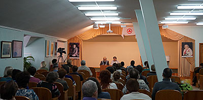 21 января исполнилось 110 лет со дня рождения русского художника-космиста — Бориса Алексеевича Смирнова-Русецкого. К юбилейной дате этого замечательного художника 24 января в новосибирском Музее Н.К. Рериха открылась выставка его картин из частного собрания (г. Москва), дополненная репродукциями и названная «Мастер прозрачности». На выставке представлены 60 оригинальных работ Смирнова-Русецкого, выполненных большей частью пастелью, и семь репродукций. Б.А. Смирнов-Русецкий оставил огромное наследие — согласно данным Г.В. Галутвы, более 2000 картин и не менее того этюдов, он является автором более 40 циклов картин. Идея существования тесно связанных и неразрывных друг от друга мира земного и мира надземного составляла стержень мировоззрения Смирнова-Русецкого, последователя философских идей Рерихов, которым художник был верен всю жизнь. Из рук Николая Константиновича и Елены Ивановны Рерих он одним из первых в России получил книги Учения Живой Этики. В июне 1941 года Смирнов-Русецкий был арестован, за «связь с русским эмигрантом Рерихом» и «антисоветскую пропаганду». Получил 10 лет исправительно-трудовых лагерей, после отбывания срока была ещё ссылка. Суммарно Борис Алексеевич был лишён свободы в течение 15 лет. В «Следственном деле Б.А. Смирнова» есть такие слова Бориса Алексеевича, отвечавшего на вопросы следователя, после того, как их творческая группа художников-космистов «Амаравелла» была подвергнута преследованиям: «Наша цель — завязать сношения с Индией, где сейчас живёт Рерих; Рерих — подлинный наш Учитель, и мы, участники того круга, с которым Рерих встречался, будучи в Москве в 1926 году, до сих пор ему верны». Мероприятие в Музее Н.К. Рериха не осталось незамеченным новосибирцами, ведь Борис Алексеевич не однажды бывал в нашем городе с выставками своих полотен. В те дни Борис Алексеевич познакомился с учёными, многими деятелями культуры Новосибирска. В архивах Н.Д. Спириной имеется фотография, на которой в её квартире в кругу гостей за оживлённой беседой мы видим и Б.А. Смирнова-Русецкого. Среди людей, пришедших 24 января на открытие выставки, были и те, кто запомнил работы Смирнова-Русецкого в те далёкие семидесятые годы.
