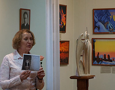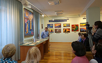 Экспозицию в Новосибирске открывала сотрудница СибРО Л.А. Ганина. ...Сегодня, 19 февраля, мы рады открыть выставку, посвященную дню рождения поэта, философа, руководителя Латвийского Общества Рериха, Рихарда Яковлевича Рудзитиса. Материалы, представленные здесь, переданы нам дочерью Рихарда Рудзитиса – Илзе, которая живет на Алтае с 1963 г. Совместно с Леопольдом Цесюлевичем много лет они исследовали алтайский этап Центрально-Азиатской экспедиции Рерихов. Благодаря им на доме В.С. Атаманова в Верх-Уймон в 1974 году была установлена мемориальная доска, посвящённая пребыванию там экспедиции. Символично, что сегодня же в Доме-музее Рериха в Верх-Уймоне также открыта выставка, посвященная Рудзитису. Материалы к ней предоставлены также Илзе Рихардовной. Илзе Рудзите – художник, участник 65 выставок, из них 27 – персональных. География выставок очень широка. Мы благодарны Илзе Рихардовне за эти уникальные предметы, которые позволят нам ближе узнать этого удивительного человека.
