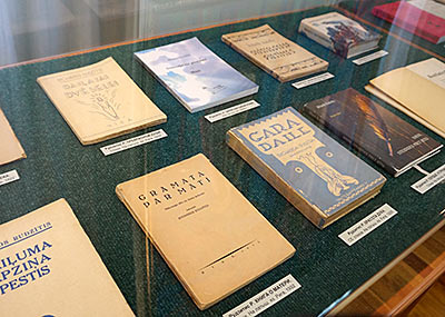 В 1932 г. выходит поэтический сборник «Книга о матери». 20 марта в дневнике Рудзитис пишет: «Держу в руках новую «Книгу о Матери». Белая, ясная, хрупкая. В муках рожденная. От светлого лика её грустные струны трепещут». В 1933 г. выходит сборник стихов Рудзитиса "Прекрасной душе", который в 1935 г. переиздается. 20-30-е гг. – это время расцвета поэтического творчества Рихарда Рудзитиса. Он писал стихи без особых правок. На них сочинялись песни, они переводились на иностранные языки. Рудзитисом было написано около 400 стихотворений. Также многие эссе Рудзитиса, по сути дела, представляют собой стихи в прозе. Например, это книга «Мыслители и борцы» (1935), в которой рассказывается о Данте, Шелли, Байроне, Роллане, Чюрленисе, Райнисе. Его «Записки пилигрима» (1929) повествуют о красоте Земли и её городов, это книга путешествий. Обе эти книги есть в витрине. «Записки пилигрима» несколько раз переиздавались. У нас есть эта книга на латышском языке 2009 г. издания.