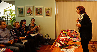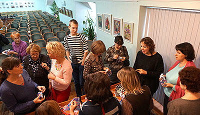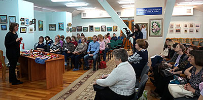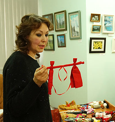 28 марта в рамках педагогической секции прошла встреча с педагогом-этнологом Светланой Власовной Велесовой. Светлана Власовна уже много лет занимается изучением народных традиций, связанных с куклами. Она рассказала о психолого-педагогических особенностях детской народной игрушки. В нашем городе есть Музей детства, сотрудником которого является Светлана Власовна, а также своими наработками она делится в музейном комплексе «Десятиручка», который находится в селе Чепош на Алтае. Участники секции с большим интересом слушали Светлану Власовну и в конце секции на мастер-классе смогли сделать своими руками обереговую куклу наших предков.