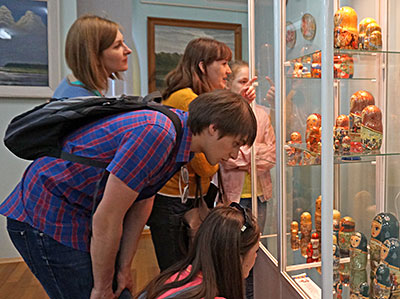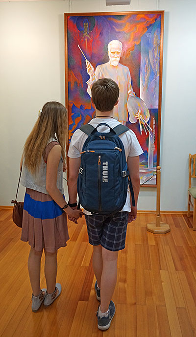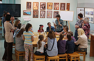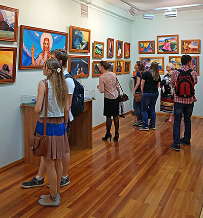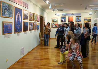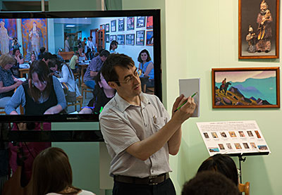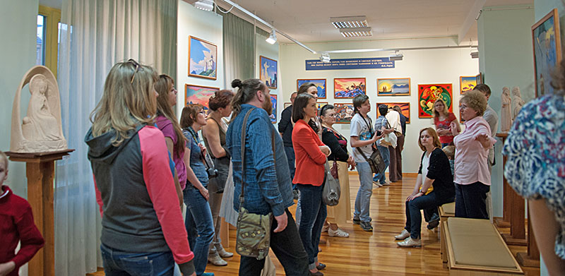 Пока в фойе второго этажа кипела работа мастер-классов, в других выставочных залах шли экскурсии. Было много новых людей, впервые посетивших Музей Рериха, но вопросы у них были не праздные, не случайные. Многие ребята и взрослые находились в Музее по три-четыре часа, некоторые провели здесь почти весь день. Экскурсоводы и смотрители музейных залов запомнили молодого человека, который больше часа изучал каталог картин Н.К. Рериха.