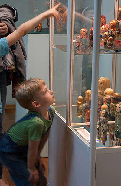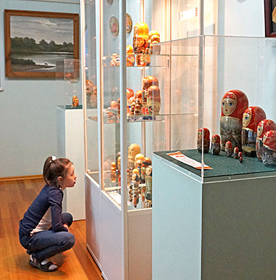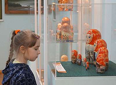 Открывая выставку, Надежда Жарий отметила, что деревянная игрушка известна на Руси с глубокой древности, а «столицей игрушечного царства» постепенно стало Подмосковье, Троице-Сергиева лавра. Силуэт и стиль росписи русской матрёшки менялись с течением времени. В начале XX века большое влияние на тематику росписей оказало общее увлечение русской историей. В период с 1900 по 1910 год появились матрёшки, изображавшие древнерусских витязей и бояр, а в честь столетия Отечественной войны в 1912 году были изготовлены “Кутузов” и “Наполеон” со штабами.