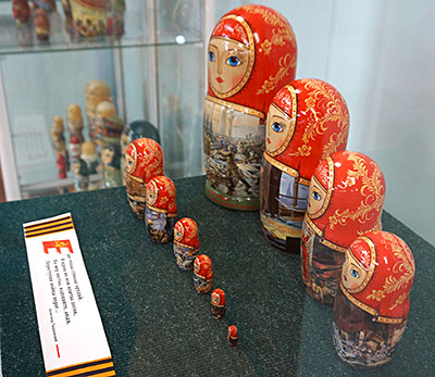 На выставке Н.Т. Черниковой представлены самые разные расписные матрёшки, но особый цикл составляют матрёшки под общим названием «Ратная слава Руси».