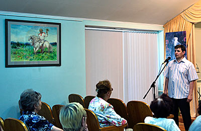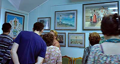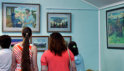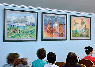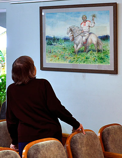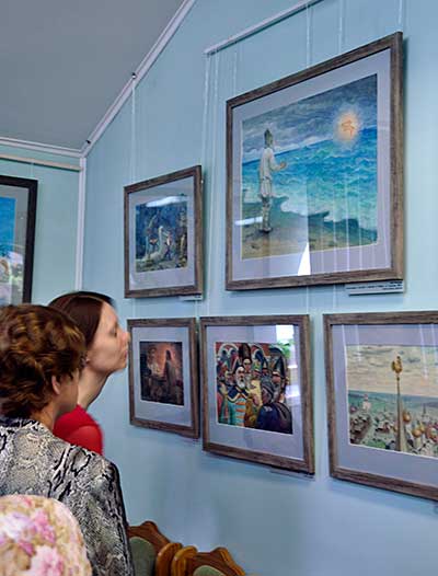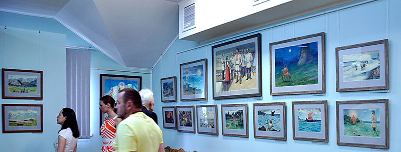 Более двух столетий — со времени вхождения Алтая в состав России — все народы, населяющие алтайскую землю, живут в мире и согласии. Русская культура так же близка Мирославу Павловичу и занимает в его творчестве особое место. На выставке она представлена периодом язычества и сказочным миром произведений А.С. Пушкина. Показаны яркие образы древних богов — Ярило, Даждьбог, Велес, богатырь Микула Селянинович и Вольга, герои пушкинских «Руслана и Людмилы», «Сказки о рыбаке и рыбке», «Сказки о попе и о работнике его Балде».