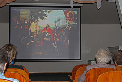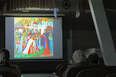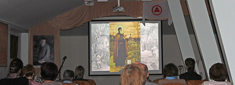После просмотра фильма о Н.К. Рерихе — «Голос Эпохи» — участникам встречи демонстрировался фильм о Куликовской битве — «Поле Русской славы». «В 1380 году, 21 сентября, на Куликовом поле, под предводительством внука Ивана Калиты московского князя Дмитрия состоялось великое сражение русичей с татаро-монголами, которое закончилось победой русского воинства. Но что предшествовало этой битве? Пребывая более ста лет под гнётом великих монгольских ханов, а затем ханов Золотой Орды, Русь, раздираемая междоусобной враждой князей, была очень слаба. Положение было настолько серьёзным, что стоял вопрос — быть или не быть Руси. Величайший подвижник того времени, святой Сергий Радонежский, понимал, в чём заключалось спасение Руси — в единении. И он стал ходить по земле русской, мирить князей, убеждать их объединиться. Князья с уважением относились к Сергию и прислушались к его мнению. Первыми объединились московский князь и тверской, которые до этого были непримиримыми врагами. Это не понравилось ханам — им была на руку слабая Русь, и чтобы не допустить дальнейшего единения русских князей, Мамай собрал огромное войско и двинулся на Москву...»
