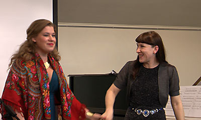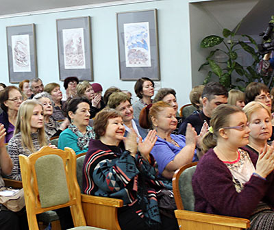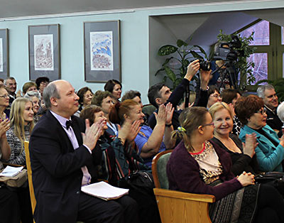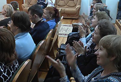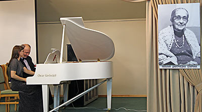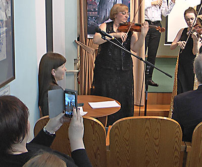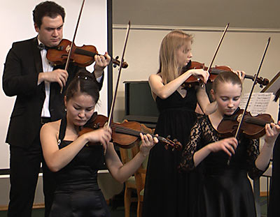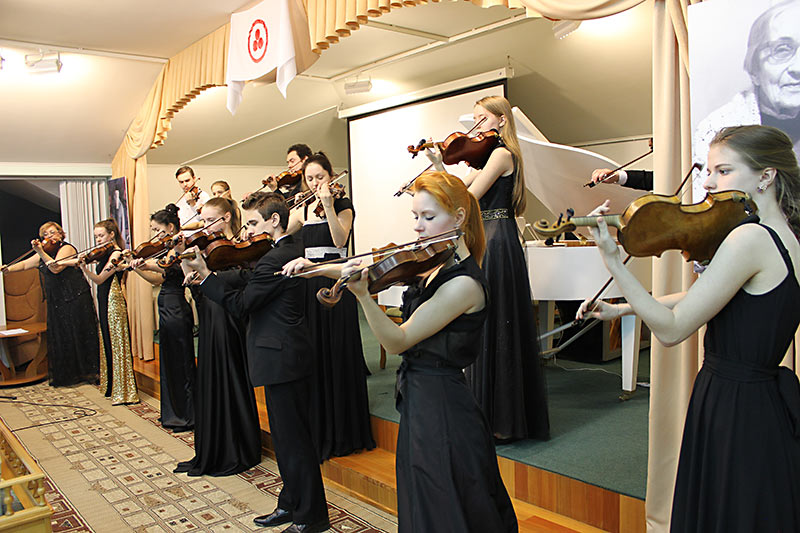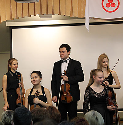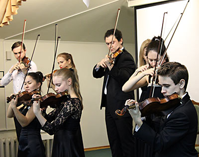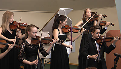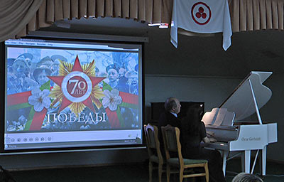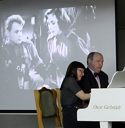 Прошедший 2015 год — год 70-летия Великой Победы. Фортепианный дуэт Эльвиры и Анатолия Полонских исполнил попурри из известных песен военных лет. Тепло встретили слушатели выступление солистки Новосибирского оперного театра Ольги Колобовой. Ансамбль скрипачей «Блестящие смычки» под руководством заслуженного деятеля искусств России, профессора Марины Кузиной завершил встречу с музыкой кино. В составе коллектива молодые музыканты — лучшие представители новосибирской скрипичной школы, их выступление было слаженным и стройным, произведения исполнялись профессионально и эмоционально. Прозвучала музыка М.Дунаевского из кинофильмов «Дети капитана Гранта» и «Волга – Волга», Е.Дога из кинофильма «Мой ласковый нежный зверь». Очередная встреча в лектории «Выдающиеся имена мировой музыкальной культуры» состоится 12 марта, тема — «За пределами желания, или Он открыл миру Баха» (Феликс Мендельсон).